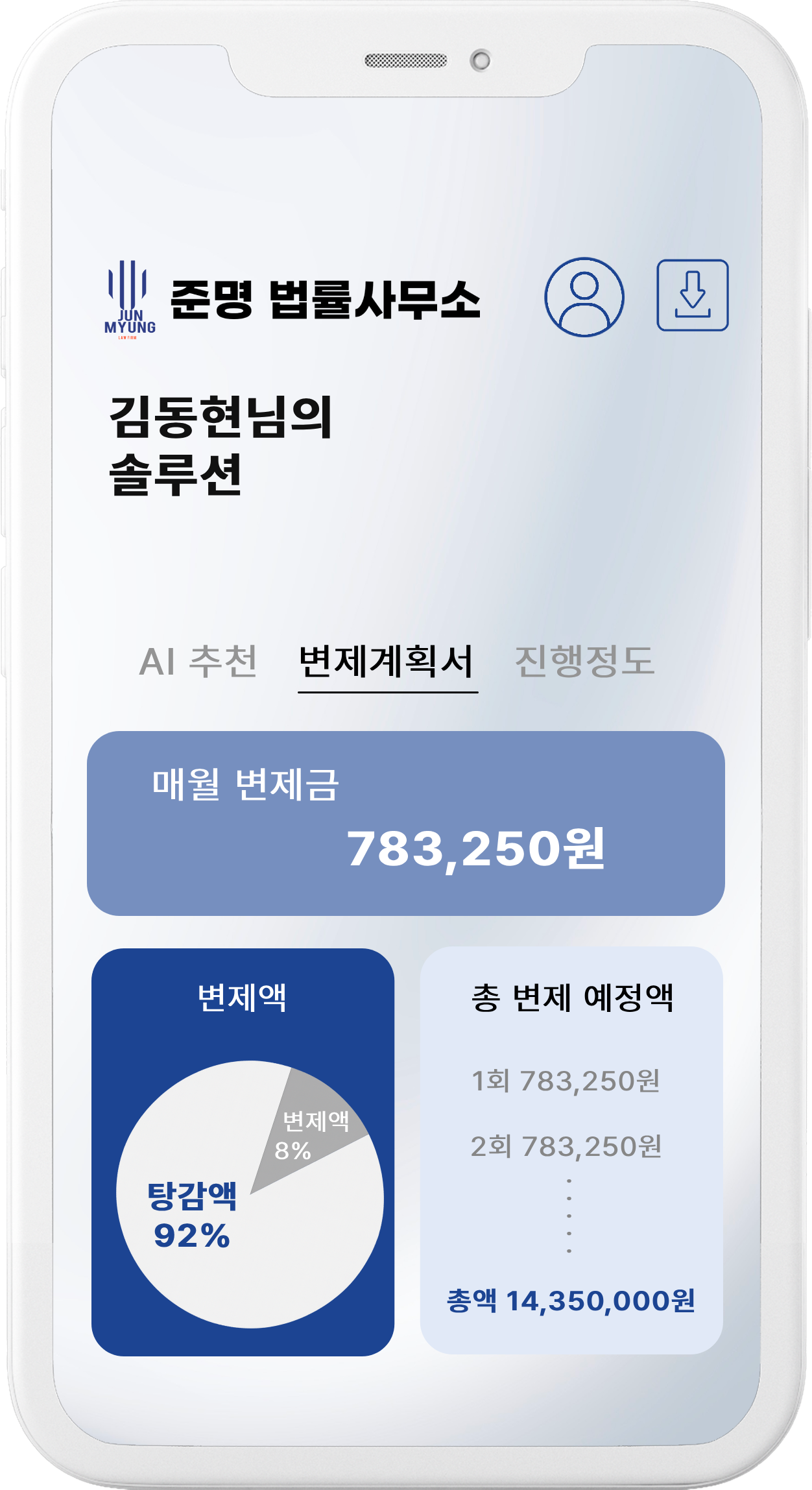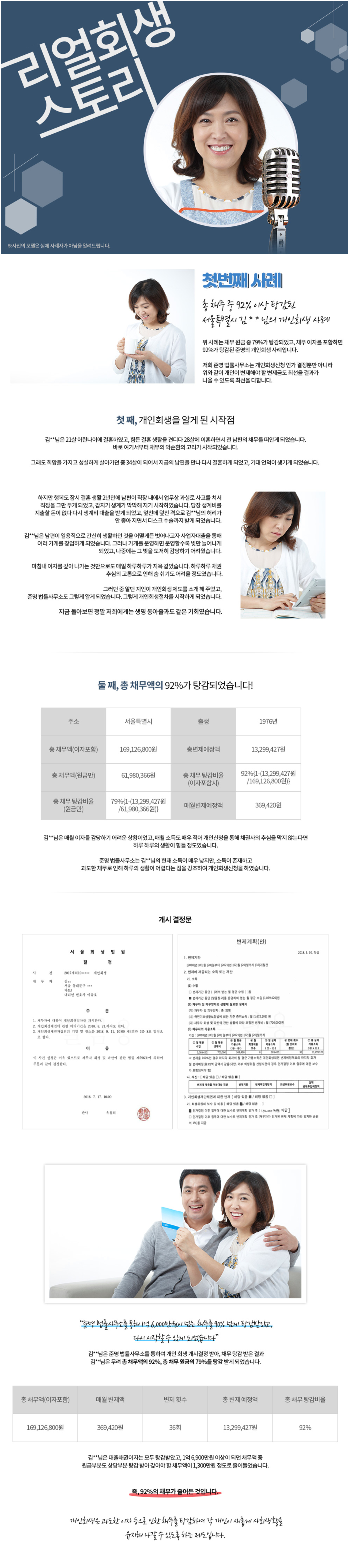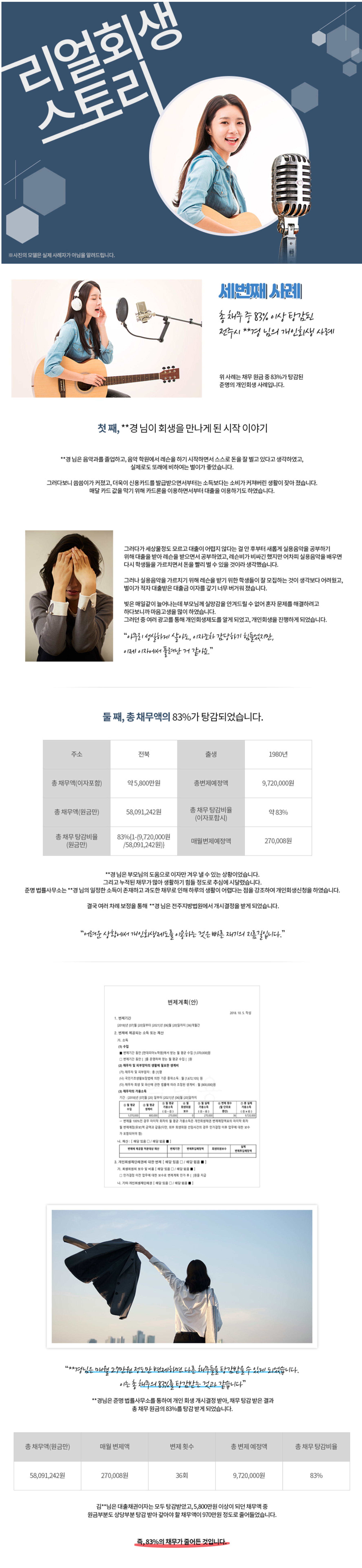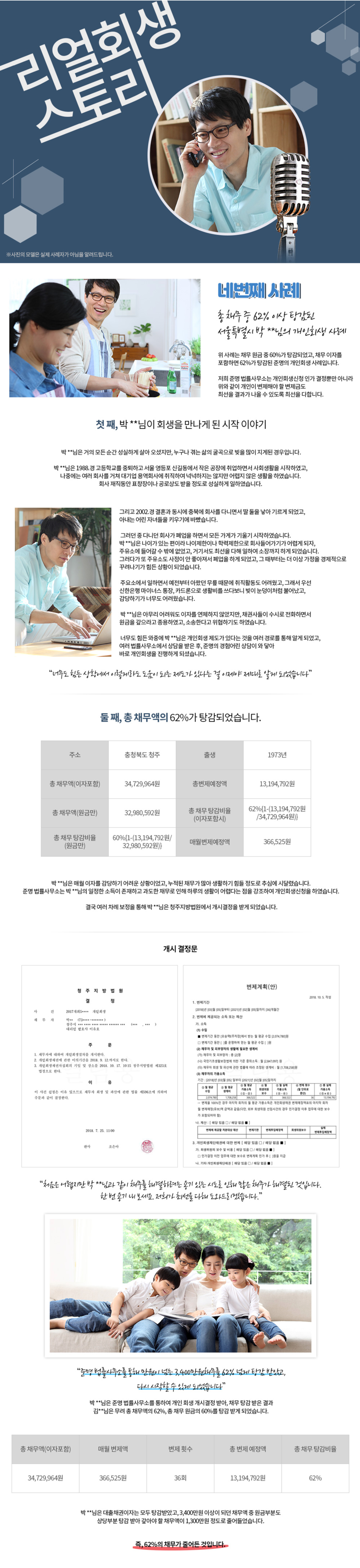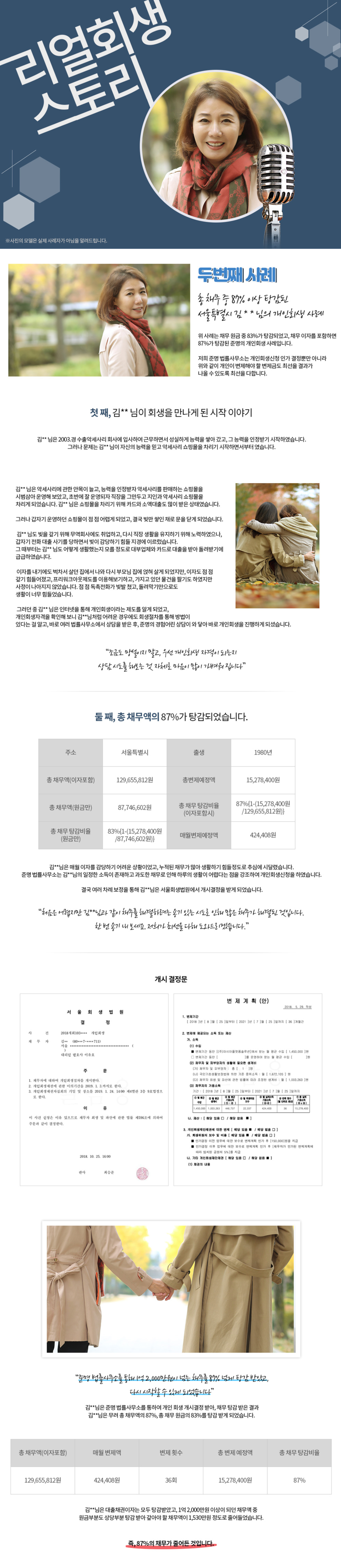 “준명 법률사무소를 통해 1억 6,000만원이 넘는 채무를 90% 넘게 탕감받았고,